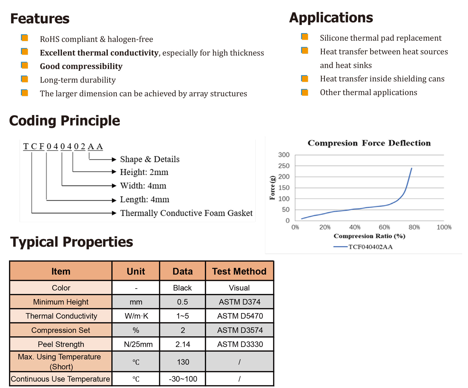 首頁 > 產(chǎn)品 > 熱管理材料 > 熱界面材料 (TIMs) > TCF系列導(dǎo)熱泡棉墊片