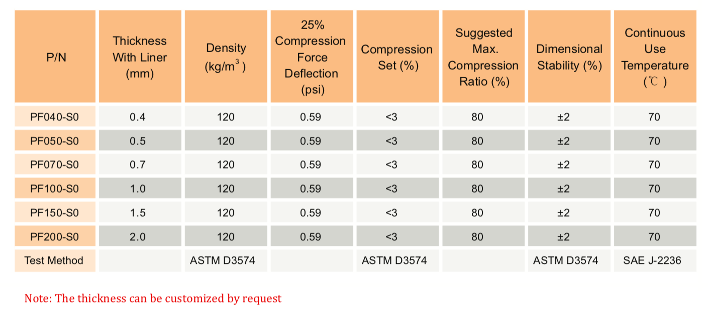 TM PF-S0 系列是一種超柔軟、低密度、緩慢回彈的泡棉,用于電子設(shè)備中的緩沖、保護(hù)性密封和長(zhǎng)期間隙填充。可以達(dá)到80%的壓縮比。S0系列泡棉具有非常低的壓縮永久變形率,還擁有高密封性能,以及在不平整表面上也有出色的沖擊吸收能力。" />