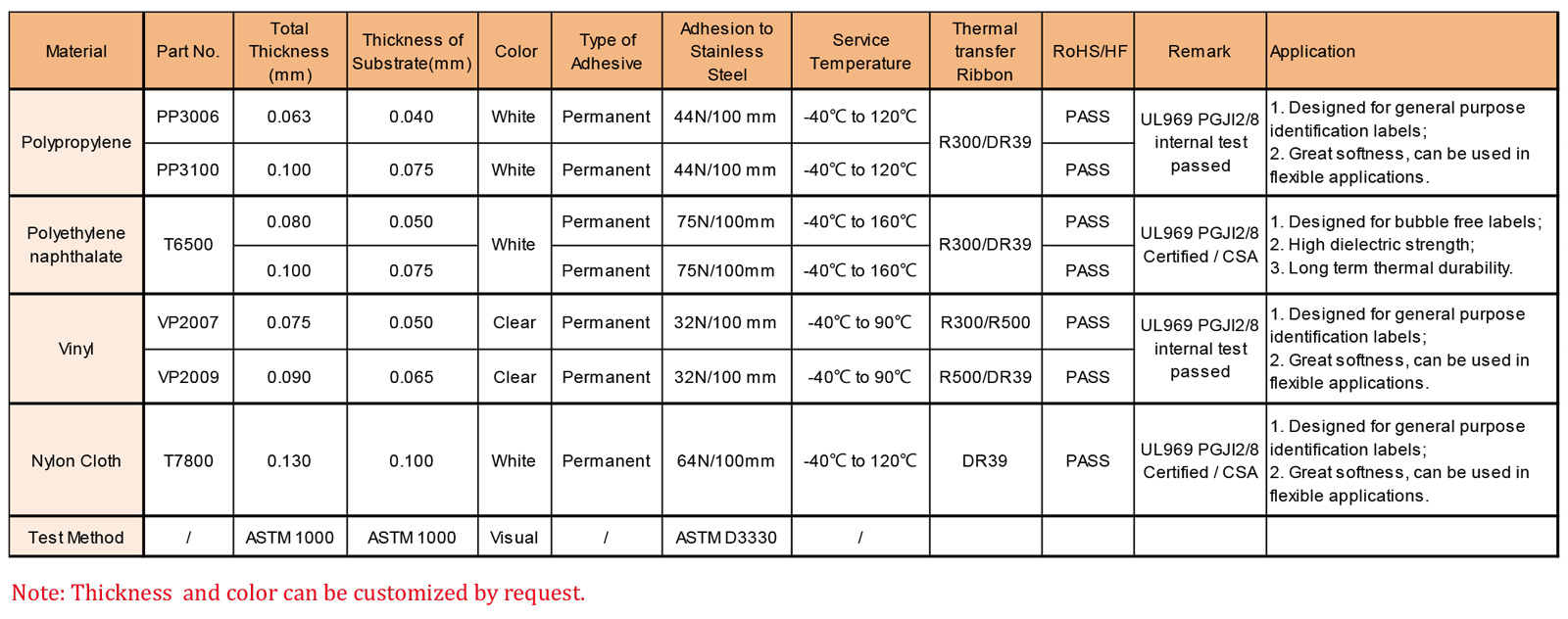 首頁 > 產(chǎn)品 > 印刷 / 模切 > 標(biāo)簽 > 聚丙烯、聚丙烯萘酸酯、乙烯基、尼龍